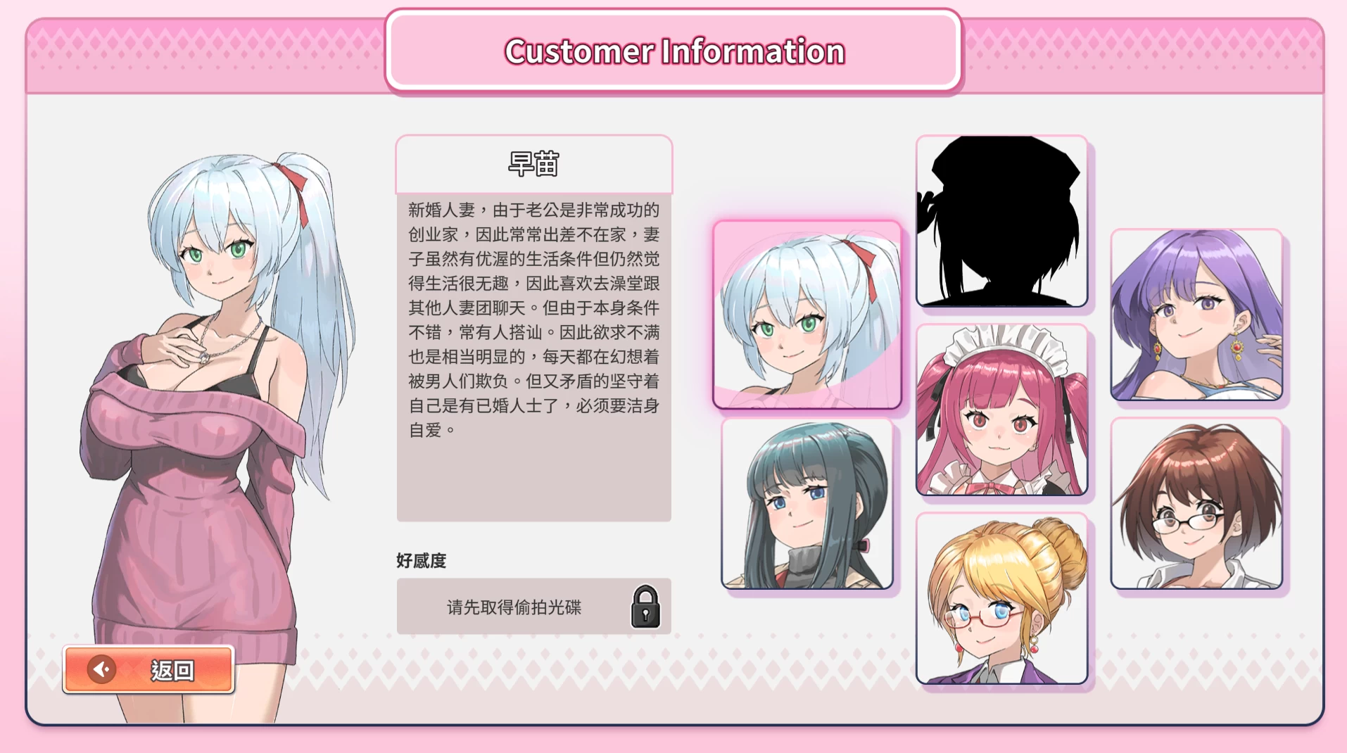 但是由于身体染上怪病,主角不得不在性慾高涨的时候进行处理,此时可以想办法以浴场老闆的名义吸引7位不同身分的女主角们前来消费,并进而培养感情进行更亲近的互动。