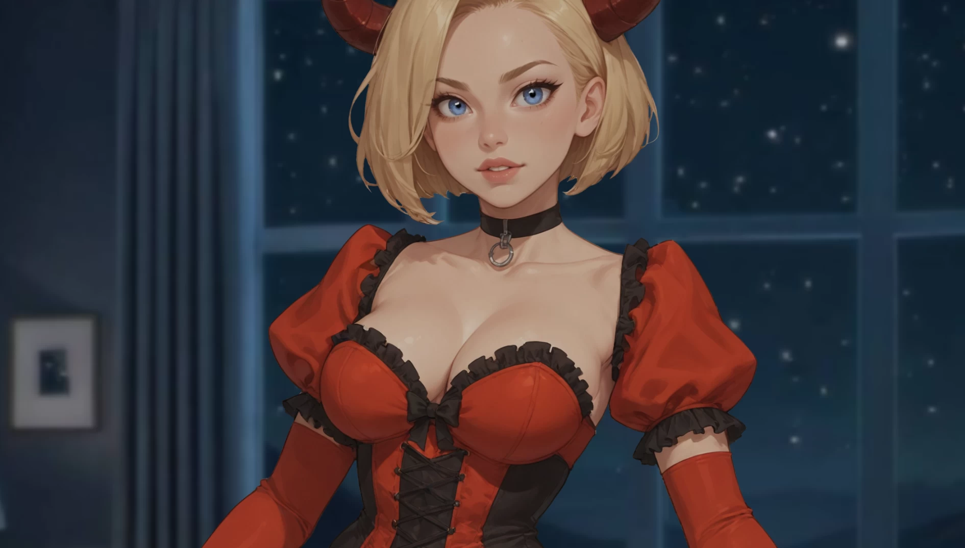 (白色紧身胸衣覆盖下背部,而她之前并未穿着)