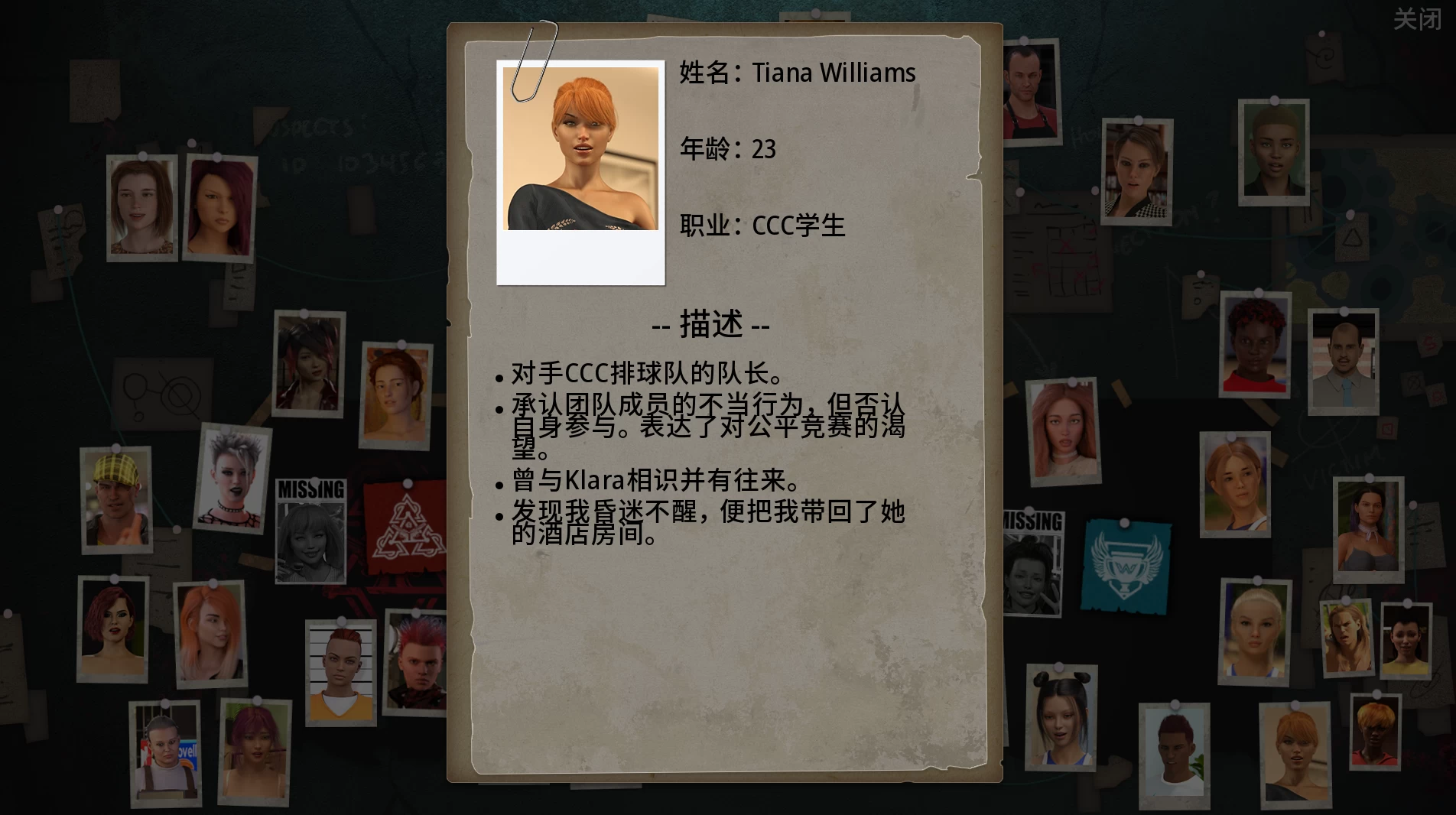 在你的调查板上收集线索,了解更多关于你身边女士的信息。