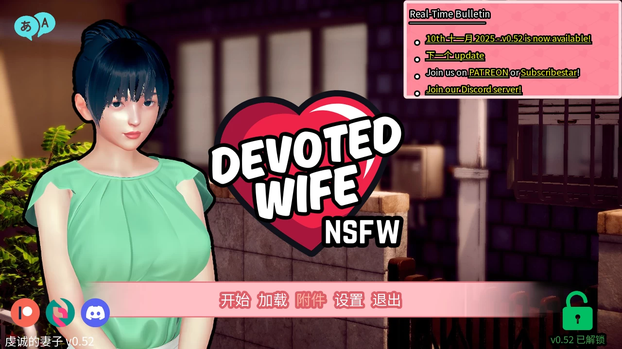 运行原版:双击DevotedWife0.52.exe运行原版游戏,语言选择英文,然后退出游戏