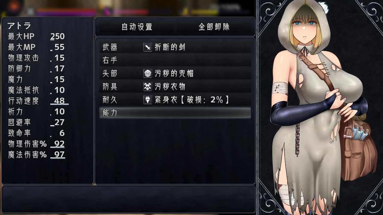 ■ 如果怪物的束缚攻击成功,而你立即使用道具逃脱,你将失去贞洁。