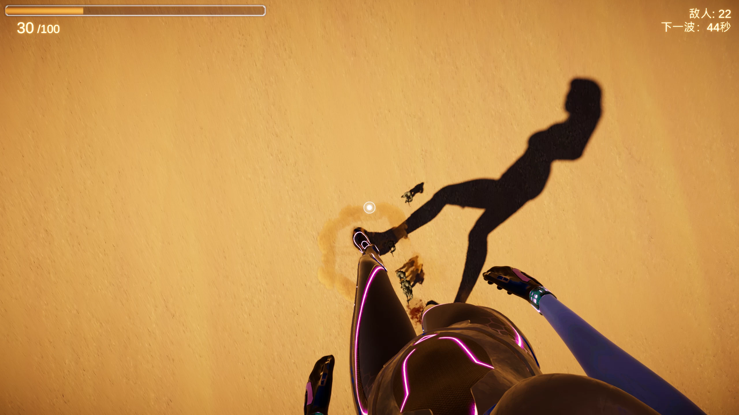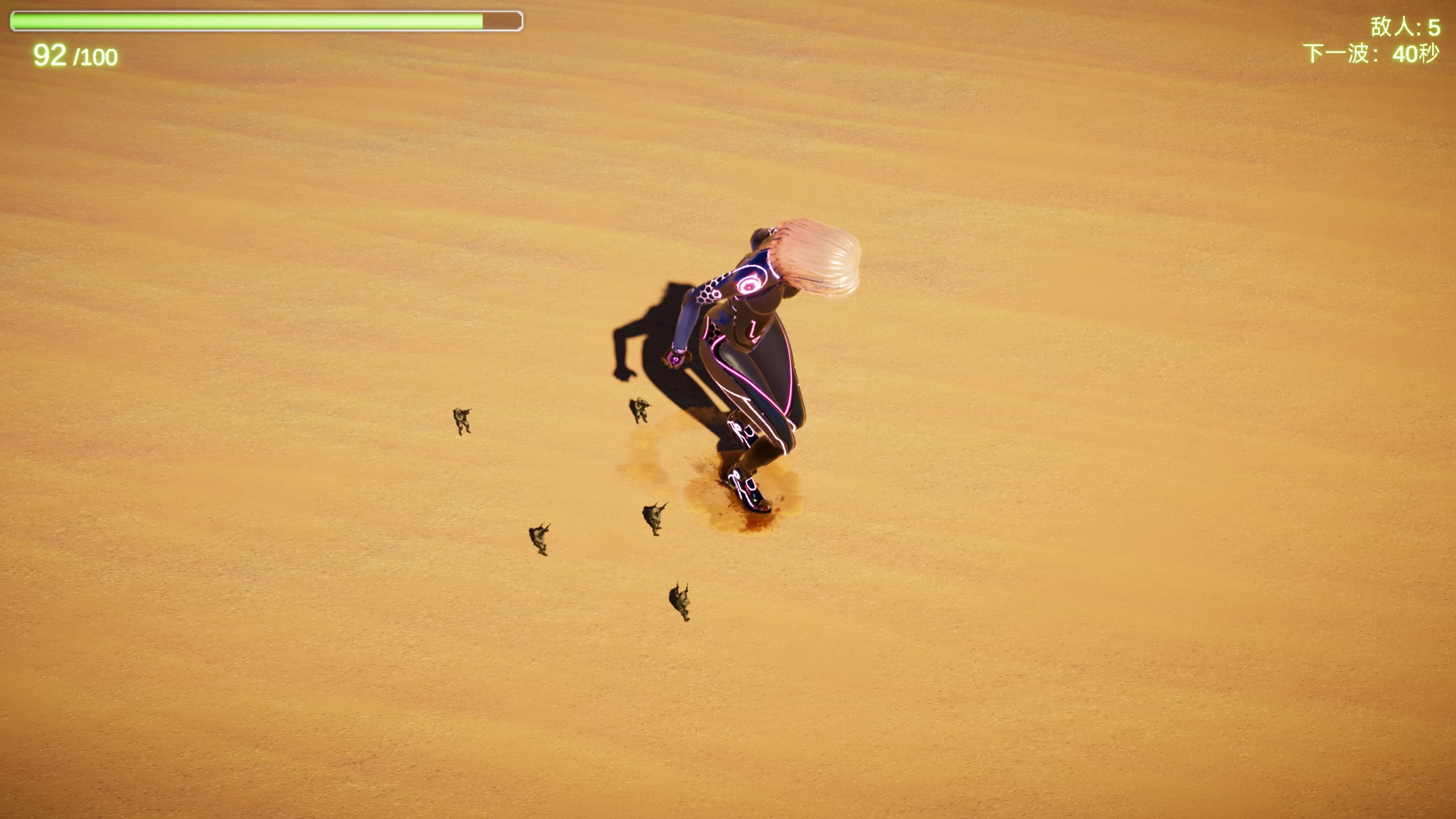 这是一个控制女巨人去战斗的游戏,由于体型太大,对付敌军只需要直接踩死,对!就是踩死!一直踩就对了!