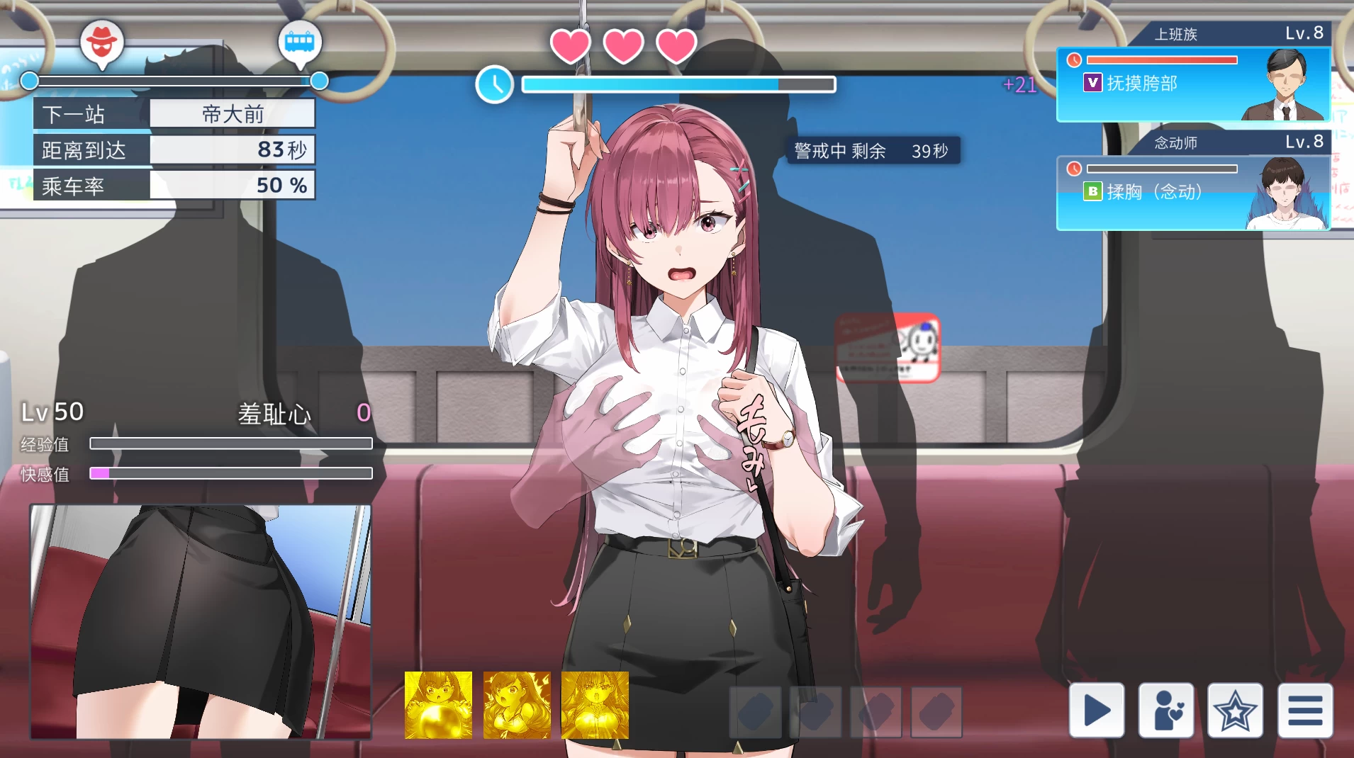 诱饵痴汉搜查官和痴汉们战斗的战斗色情游戏。抓住色狼来升级,重复游戏的话女主角会慢慢变得更强。